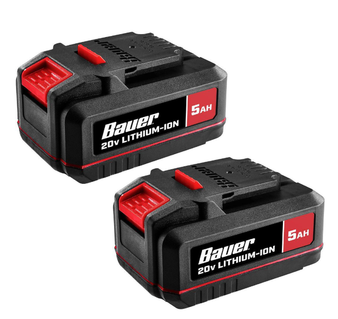 BAUER 20V 5 Ah High-Capacity Lithium-Ion Battery Bundle, 2-Pack