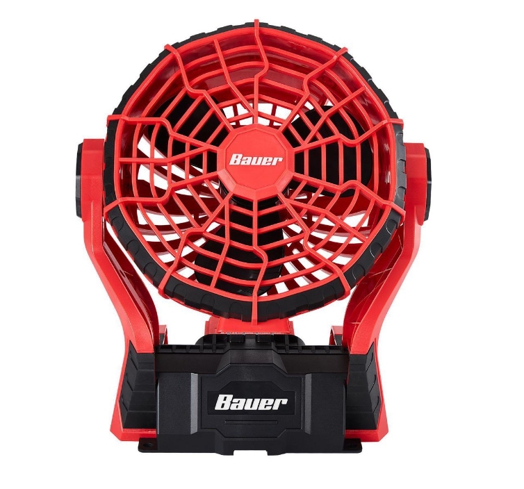 The BAUER™ Dual Power Fan is compact and easy to carry to the jobsite. This high-efficiency fan moves 250 CFM of air at speeds up to 12 MPH for a cool work area. Designed for use with a 20V BAUER™ lithium-ion battery, this compact fan can also be powered by a 120v extension cord. With two speed settings, a 180 ° adjustable head and multiple mounting options including a built-in rafter hook this fan delivers cooling where you need it most.